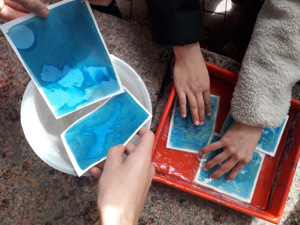 Habt ihr Lust, mit Sonnenlicht wunderschöne blaue Bilder zu zaubern? Dann ist unser Cyanotypie-Workshop genau das Richtige für euch! Cyanotypie ist eine besondere Drucktechnik, die schon vor über 100 Jahren erfunden wurde. Mit einer speziellen Mischung, die das Papier lichtempfindlich macht, und der Kraft der Sonne entstehen faszinierende blau-weiße Kunstwerke.